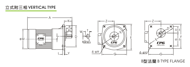 CV..SD 立式附三相铝壳齿轮减速马达有时也叫CPG齿轮减速电机或CPG齿轮减速马达。其高达95%以上的传动效率深受用户喜爱。此系列下有多种减速机类型,有带法兰型,不带法兰型,双轴型,单轴型,高速比型,低速比型等多种型号,满足了不同客户的需求,真正做到真正做到覆盖全行业。一流的设计技术和特等制造材料成为了CPG品牌的代名词,每款产品上市后都能得到客户的认可,是用心做产品的企业。